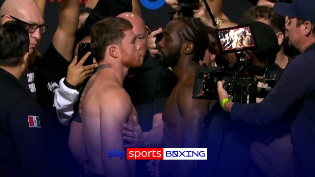 Canelo Alvarez and Terence Crawford both weigh in at 167.5 pounds on the eve of their undisputed super middleweight championship showdown.